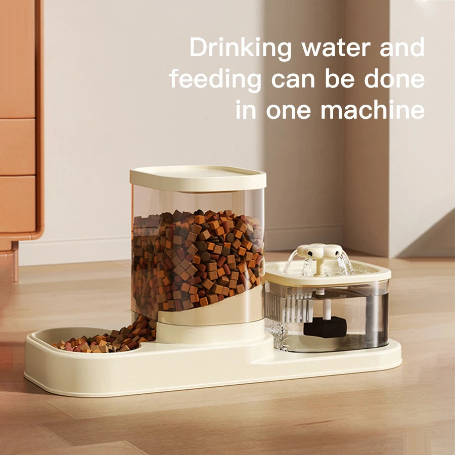 Cat Water Dispenser with Circulating Automatic Flow, Drinking Bowl, Feeding and Watering All-in-One 2-in-1 Pet Device
