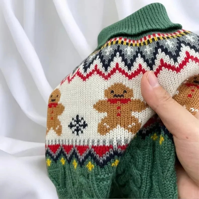 Red and green gingerbread, reindeer, Christmas pet sweater, small dog clothes, small dog cat, keep warm in winter